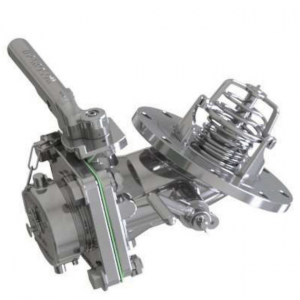 A bottom discharge is designed to be fitted at the bottom of a tank or tanker to ensure loading and unloading. It generally consists of a footvalve, followed by a second closure valve (a ball valve or butterfly valve), and lastly an outlet nozzle with cap or a coupling. The footvalve can have an internal or external spring. Perolo offers both mechanic and pneumatic actuated footvalves. For ISO tank containers, footvalves have an angle of 45° or 30°, whereas with Road Tankers or Offshore tanks an angle of 90° is more common.